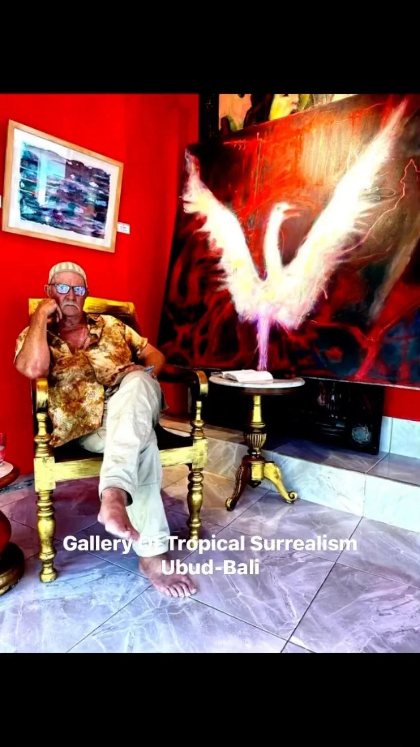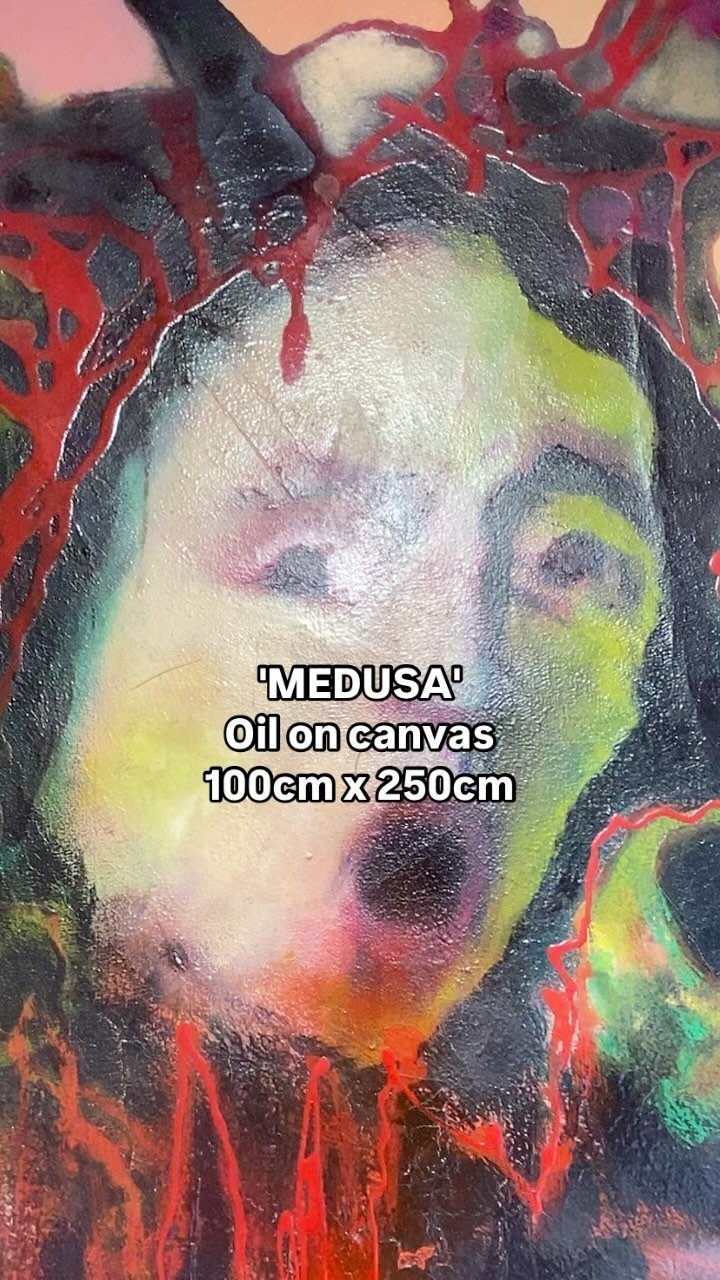 The painting titled 'LIFE' is intended to express the energy and power, the beauty and splendor, the challenge and mystery of life itself. The setting, environment or context is a Jungle where plant, animal and human life become interchangeable and inseparable manifestations of the life force. In the midst of the creative process however a secondary meaning presented itself. At the center of the painting the torso, head and outstretched arms of a crucified Christ appeared.